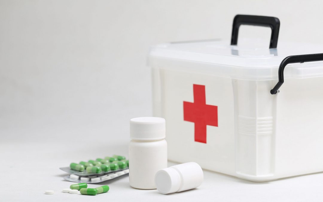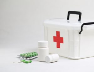 medicine bottles and home medical kit